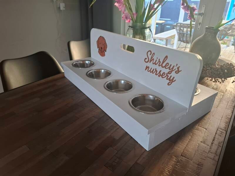 Elke voertray wordt op maat en met de hand gemaakt, volledig naar de wens van de klant. Een logo, tekst of afbeelding kan erop geschilderd worden om de tray extra persoonlijk te maken. Bij rwhoutidee.jouwweb.nl streven we ernaar om unieke en functionele producten te leveren die perfect aansluiten bij uw behoeften en de persoonlijkheid van uw huisdieren.