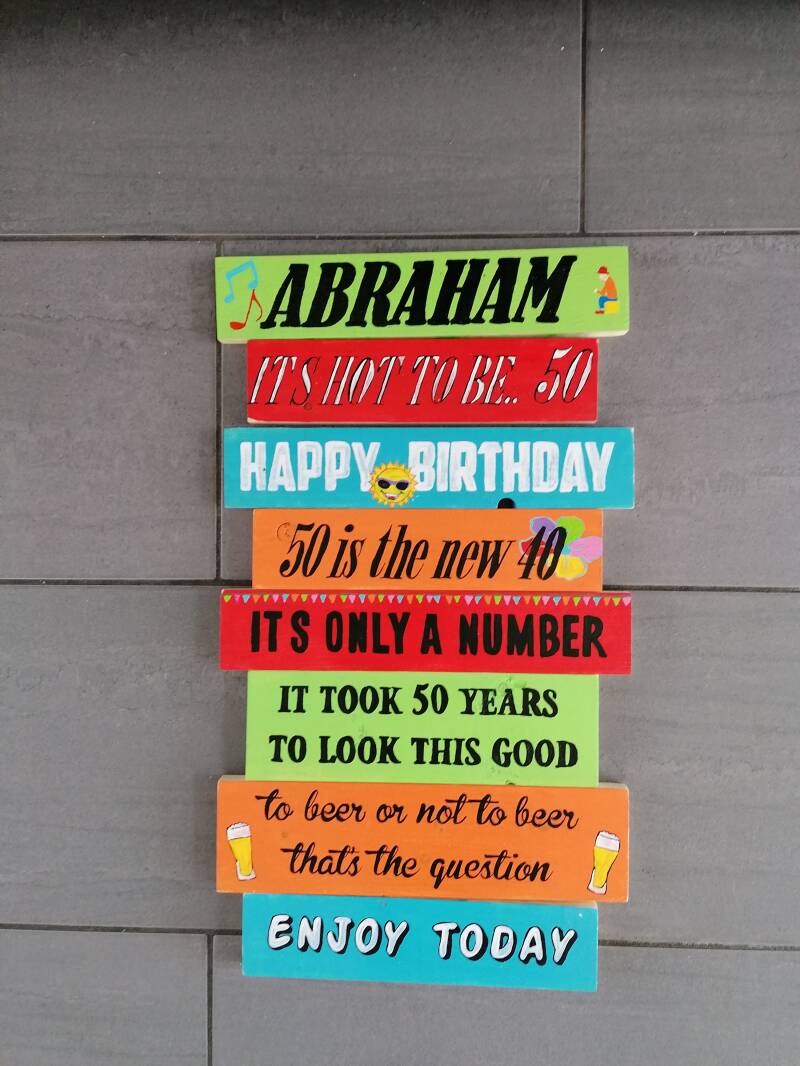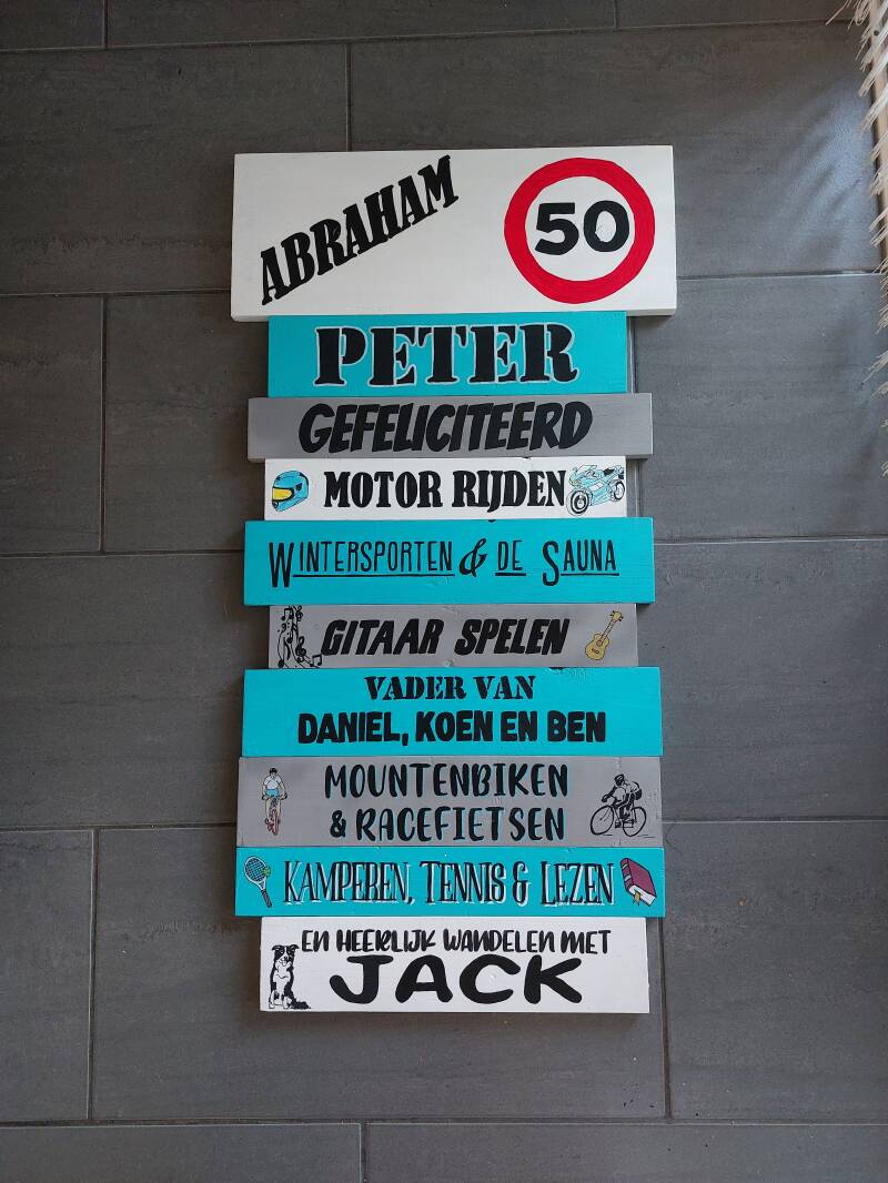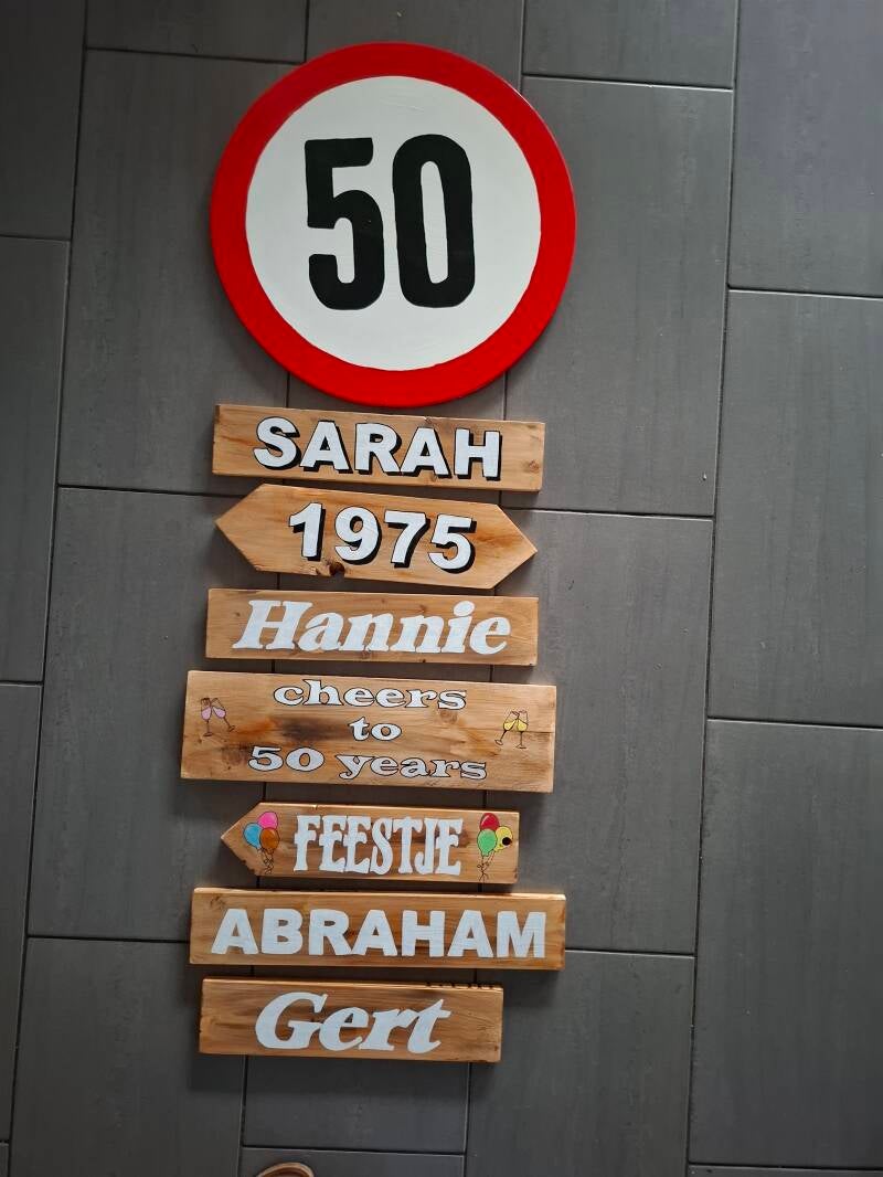 Zoekt u iets leuks om voor een 50 jarige in de tuin te zetten, wat dacht u van deze leuke wegwijzers.