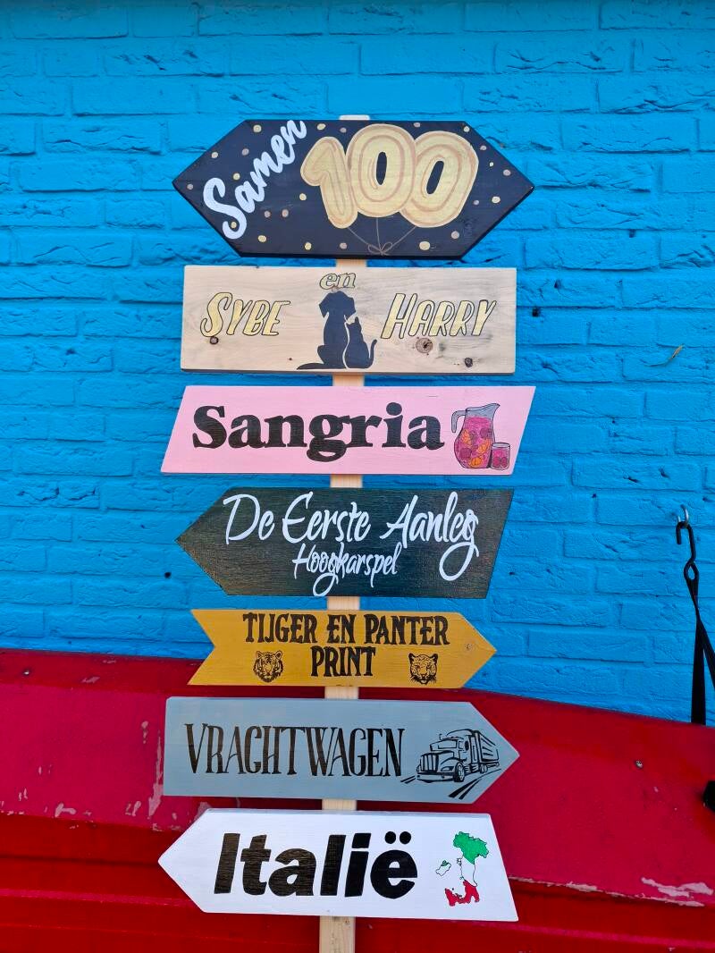 Zoekt u iets leuks om voor een jarige in de tuin te zetten, wat dacht u van deze leuke wegwijzers.