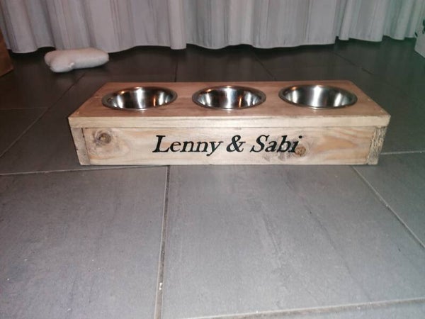 we maken alles met de hand en op maat zoals u wilt, zo heeft u de perfecte voer en drinkbak standaard voor uw trouwe viervoeter.