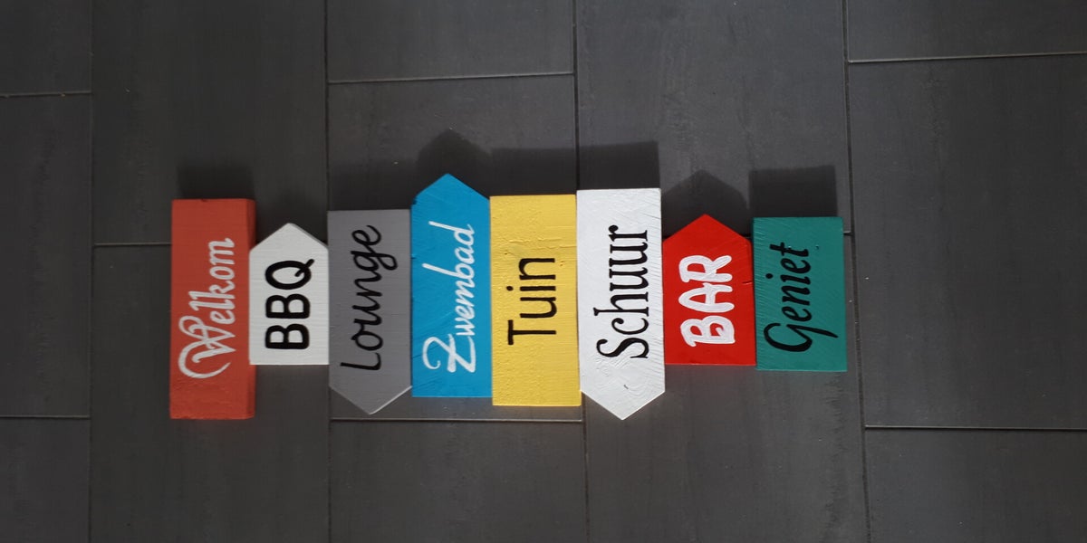 zo maakt u een prachtige wegwijzer voor verjaardag, bruiloft, tuin, strandtent, camping etc.