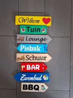 Wegwijzerborden voor in uw tuin zodat de mensen weten dat uw bedrijf daar gevestigd zit en waar u voor staat, een sieraad voor uw tuin